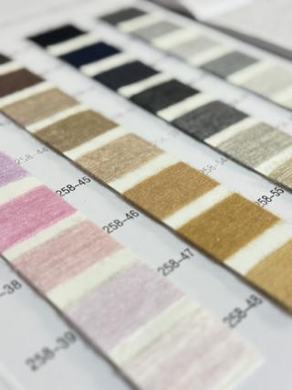 风格特点:配色以柔和色系(紫、粉)+ 自然色系(棕、金)+ 基础色系(黑、灰)为主,肌理是 “真丝的柔滑 + 羊毛的柔软”,呈现「轻暖无压的环保轻奢质感」,解决 “冬季面料要么厚重、要么缺乏环保属性” 的痛点。