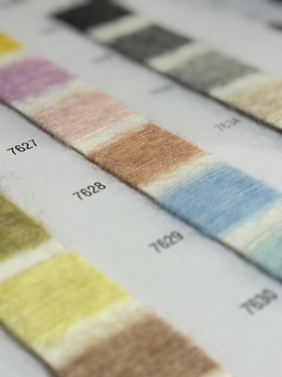 风格特点:配色以浓郁复古色(酒红、墨绿)+ 奢级中性色(深棕、藏青)+ 柔雾亮色为主,肌理融合 “婴幼羊驼的暖糯”“马海的柔滑光泽” 与 “美丽诺羊毛的细腻”,呈现「奢柔暖糯的尊绒质感」,既解决了纯羊驼面料 “易掉毛、成本过高” 的问题,也规避了普通高端面料 “厚重显臃肿” 的短板。